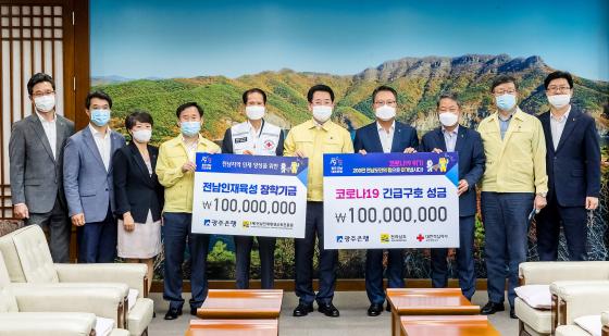 [¹Ìµð¾îÀü³² Á¦°¥´ëÁ¾ ±âÀÚ] ±¤ÁÖÀºÇà(ÀºÇàÀå ¼ÛÁ¾¿í)Àº 8ÀÏ Àü³²µµÃ»¿¡¼ ±è¿µ·Ï Àü¶ó³²µµÁö»ç¿Í ¼ÛÁ¾¿í ±¤ÁÖÀºÇàÀå, ¹ÚÈï¼® ´ëÇÑÀû½ÊÀÚ»ç ±¤ÁÖÀü³²Áö»ç ȸÀå µîÀÌ Âü¼®ÇÑ °¡¿îµ¥ ¡®Äڷγª19¡¯ ±ä±Þ ±¸È£ ¼º±Ý ¹× ÀÎÀçÀ°¼º ÀåÇбâ±ÝÀ» À§ÇØ 2¾ï¿ø Àü´Þ½ÄÀ» °¡Á³´Ù°í ¹àÇû´Ù.