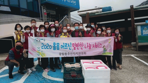 2020³â ÁÖ¹ÎÁÖµµÇü ±¤¸²µ¿ ÁÖ¹ÎÀÚÄ¡À§¿øÈ¸ ƯȻç¾÷ÀÇ ÀÏȯÀ¸·Î ÃßÁøµÇ°í ÀÖ´Â ¹Ø¹ÝÂù ³ª´® »ç¾÷Àº Äڷγª19À¸·Î ±Þ½Ä ºÀ»ç µîÀÌ ÁßÁöµÈ »óȲ¿¡¼ °í·ÉÀÇ ¾î¸£½Åµé¿¡°Ô µû¶æÇÑ ¿ÂÁ¤À» Àü´ÞÇϰí ÀÖ´Ù.