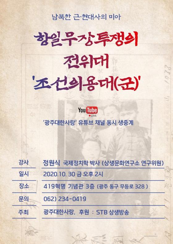 [¹Ìµð¾îÀü³² Á¦°¥´ëÁ¾ ±âÀÚ] (»ç)´ëÇÑ»ç¶û ±¤ÁÖÁöºÎ´Â ¿À´Â 30ÀÏ ±Ý¿äÀÏ ¿ÀÈÄ 2½Ã 4.19 Çõ¸í ±â³ä°ü 3Ãþ¿¡¼ Á¤¿ø½Ä ¿¬±¸¿ø(»ó»ý¹®È¿¬±¸¼Ò,±¹Á¦Á¤Ä¡Çйڻç)À» ÃÊûÇÏ¿© 'Ç×ÀϹ«ÀåÅõÀïÀÇ ÀüÀ§´ë Á¶¼±ÀÇ¿ë´ë'¶ó´Â ÁÖÁ¦·Î ¿ª»çƯ°À» °³ÃÖÇÑ´Ù.