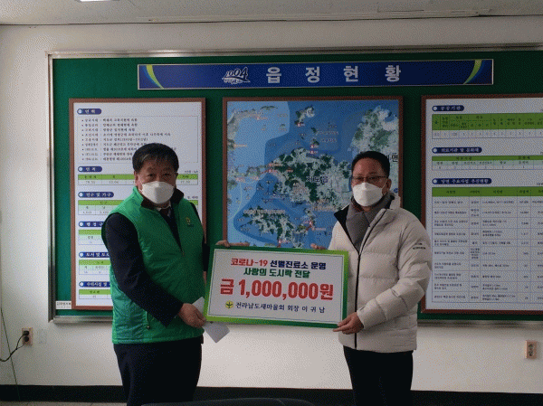 [¹Ìµð¾îÀü³² Á¦°¥´ëÁ¾ ±âÀÚ] Àü¶ó³²µµ »õ¸¶À»È¸¿Í ½Å¾È±º »õ¸¶À»È¸´Â 18ÀÏ Äڷγª19 ±Øº¹¿¡ Èû¾²°í ÀÖ´Â Áöµµ ¼±º°Áø·á¼Ò ±Ù¹«ÀÚ¿Í ÁöµµÀ¾ Á÷¿øµé¿¡°Ô °Ý·Á±Ý 1¹é50¸¸¿ø Àü´ÞÇß´Ù.