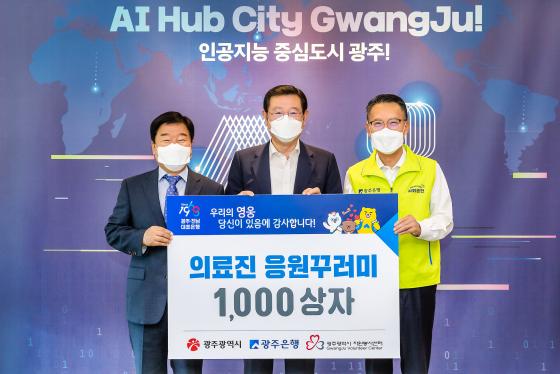 [¹Ìµð¾îÀü³² Á¦°¥´ëÁ¾ ±âÀÚ] ±¤ÁÖÀºÇà(ÀºÇàÀå ¼ÛÁ¾¿í)Àº 21ÀÏ ±¤ÁÖ±¤¿ª½Ãû¿¡¼ Äڷγª19 ÀÇ·áÁø¿¡°Ô Àü´ÞÇϱâ À§ÇÑ 5õ¸¸¿ø »ó´çÀÇ ¡®ÀÀ¿ø²Ù·¯¹Ì¡¯ 1,000»óÀÚ¸¦ Àü´ÞÇß´Ù°í ¹àÇû´Ù.