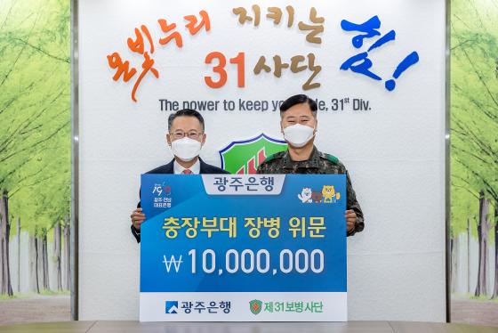 [¹Ìµð¾îÀü³² Á¦°¥´ëÁ¾ ±âÀÚ] ±¤ÁÖÀºÇà(ÀºÇàÀå ¼ÛÁ¾¿í)Àº ÃÖ±Ù Á¦31º¸º´»ç´Ü(»ç´ÜÀå ÃÖ¼ø°Ç)À» ¹æ¹®ÇØ ±ººÎ´ë À庴µéÀÇ ³ë°í¿¡ °¨»çÀÇ ¶æÀ» ´ã¾Æ 1õ¸¸ ¿øÀÇ À§¹®±ÝÀ» Àü´ÞÇß´Ù°í ¹àÇû´Ù.
