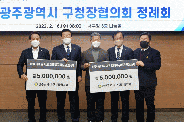16ÀÏ ±¤Áֽñ¸Ã»ÀåÇùÀÇȸ¿¡ µû¸£¸é À̳¯ ¿ÀÀü ¼±¸Ã»¿¡¼ Á¤·Êȸ¸¦ °®°í µ¿±¸¿Í ¼±¸¿¡ °¢°¢ 500¸¸¿øÀÇ Áö¿ø±ÝÀ» Àü´ÞÇϱâ·Î Çß´Ù.