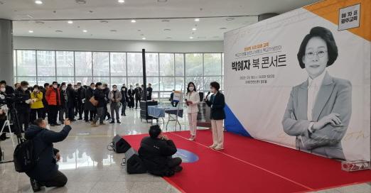 Çà»ç´Â ¹Ì´Ï °¿¬È¸ Çü½ÄÀ¸·Î ¸Å ½Ã°£ »çÁø ÃÔ¿µ°ú ÇÔ²² ÁøÇàµÆ´Ù. Çà»çÀåÀº ¹ÚÇýÀÚ ¿¹ºñÈ帰¡ ±×°£ ±³À°°è¿¡ Àå±â°£ ¸ö´ãÀº °ÍÀ» Áõ¸íÇÏµí ±³À°°è °ü°èÀÚµéÀÇ ÃàÇÏ ¸Þ½ÃÁö¿Í ¿µ»óÀ¸·Î °¡µæ á´Ù. À¯ÀºÇý ±³À°ºÎ Àå°ü, ±è´©¸® Áß¾Ó´ë ±³¼ö, ÆúÅ´ ¹Ì ½ºÅÄÆÛµå´ëÇÐ ±³¼ö µî °¢°è ±³À°ÀλçµéÀÌ Ã¥¿¡ ´ëÇÑ È£Æò°ú ÇÔ²² ÀÀ¿ø ¸Þ½ÃÁö¸¦ ÀüÇß´Ù.