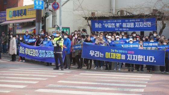 ȼø ¹«µîÀÇ ²É(´ëÇ¥ Á¤¼ø¿À) ȸ¿øµéµµ ±× ´ë¿¿¡ ÇÕ·ùÇß´Ù. ÃÖ±Ù 60¿©¸íÀÇ È¸¿øµéÀÌ ´õºÒ¾î¹ÎÁÖ´ç ȼø´ç»ç ¾Õ °íÀε¹½ÃÀå ¿À°Å¸®¿¡¼ ÀÌÀç¸í Èĺ¸ ÁöÁö¸¦ °ø°³ ¼±¾ðÇÏ°í ³ª¼¹´Ù.