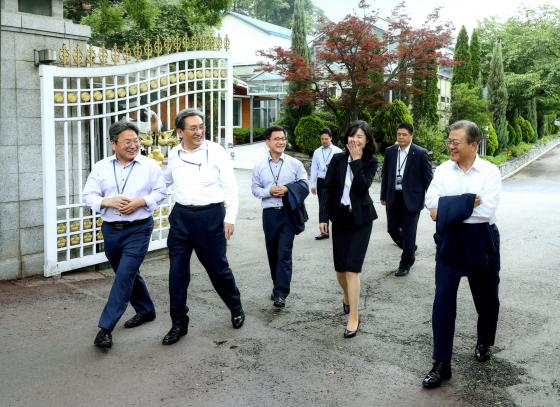° ¿¹ºñÈ帴 º¸µµÀڷḦ ÅëÇØ 10ÀÏ ¹®ÀçÀÎ ´ëÅë·É°ú ÇÔ²² ¿ÀÈÄ 12½Ã ¼¿ï¿ª¿¡¼ Ưº°¿Â÷¸¦ ÀÌ¿ëÇØ ¿ï»ê Åëµµ»ç¿ªÀ¸·Î À̵¿, ÀÌÈÄ Â÷¸¦ Ÿ°í »çÀú°¡ ÀÖ´Â ¾ç»ê Æò»ê¸¶À»¿¡ µµÂøÇß´Ù°í ¾Ë·Á¿Ô´Ù.