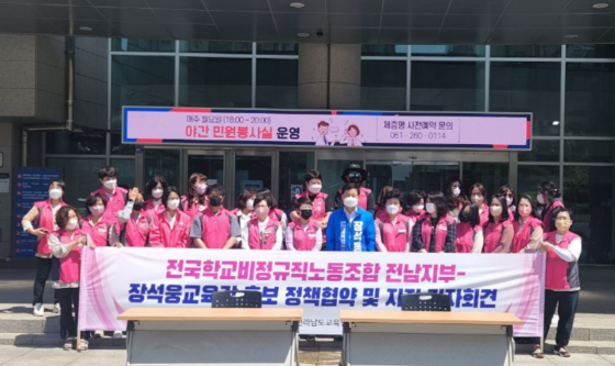 Àü±¹Çб³ºñÁ¤±ÔÁ÷³ëµ¿Á¶ÇÕ Àü³²ÁöºÎ´Â ÁöÁö ¼±¾ð¹®À» ÅëÇØ ¡°Áö³­ 4³â µ¿¾È Àå¼®¿õ È帴 Çб³ºñÁ¤±ÔÁ÷ÀÇ °í¿ë¾ÈÁ¤À» À§ÇØ ÃʵÆ÷Ã÷°­»çÀÇ ¹«±âÁ÷ÀüȯÀ» Àü±¹ ÃÖÃÊ·Î ½Ç½ÃÇß´Ù¡±¸ç ¡°¹æÇÐ Áß ºñ±Ù¹«ÀÚµéÀÇ Ã³¿ì°³¼±À» À§ÇÑ ±Ù¹«Àϼö È®´ë¸¦ ºñ·ÔÇØ Á÷Á¾º° ó¿ì°³¼±À» ¾ÕÀå¼­ ÃßÁøÇÏ¿© Àü±¹ÀÇ ºñÁ¤±ÔÁ÷ ¹®Á¦ ÇØ°áÀ» °ßÀÎÇÏ´Â ¿ªÇÒÀ» ÇÑ °ÍÀº ÀÚ¸íÇÑ »ç½ÇÀÌ´Ù¡±°í ¹àÇû´Ù.