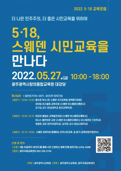 24ÀÏ ½Ã±³À°Ã»¿¡ µû¸£¸é À̹ø ¡®2022 5¡¤18±³À°Æ÷·³¡¯Àº ´ëÇ¥ÀûÀÎ Ç®»Ñ¸® ¹ÎÁÖÁÖÀÇ ±¹°¡ÀÎ ½º¿þµ§ÀÇ ±³À° Àü¹®°¡¿Í ±³ÀåÀ» ÃÊÃ»ÇØ Àü¸é ´ë¸éÀ¸·Î ÁøÇàÇÑ´Ù.