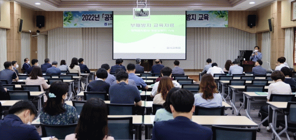 [¹Ìµð¾îÀü³² Á¦°¥´ëÁ¾ ±âÀÚ] ±¤Áֽñ³À°Ã»ÀÌ 2ÀÏ ´ëȸÀǽǿ¡¼ Àüü Á÷¿øÀ» ´ë»óÀ¸·Î 2022³â ¡®°øÁ÷ÀÚÀÇ ÀÌÇØÃæµ¹ ¹æÁö¹ý¡¯ µî ºÎÆÐ¹æÁö¿¡ °üÇÑ Á÷Àå±³À°À» ½Ç½ÃÇß´Ù.
