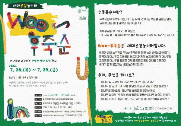 [¹Ìµð¾îÀü³² ÃÖ¶õÈñ ±âÀÚ] ´ã¾ç±º¹®ÈÀç´Ü ¹®Èµµ½ÃÃßÁø´ÜÀÌ ¿©¸§¹æÇÐÀ» ¸Â¾Æ 7¿ù 28ÀÏ~29ÀÏ Ä·ÇÁÇü ÇÁ·Î±×·¥ ¡®¼¼´ë°ø°¨³îÀÌÅÍ WOO-ÈÄÁ×¼ø¡¯À» ÁøÇàÇÑ´Ù.