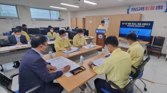 [¹Ìµð¾îÀü³² °í±Ô¼® ±âÀÚ] Àü¶ó³²µµÀÇȸ ±³À°À§¿øÈ¸ Á¶¿ÁÇö À§¿øÀå(´õºÒ¾î¹ÎÁִ硤¸ñÆ÷2)Àº 5ÀÏ Àü¶ó³²µµ±³À°Ã» Àç³´ëÀÀ»óȲ½ÇÀ» ¹æ¹®ÇØ 11È£ ÅÂdz ¡®Èù³²³ë¡¯ ºÏ»ó¿¡ µû¸¥ ´ëºñ »óȲÀ» Á¡°ËÇϰí 24½Ã°£ ºñ»ó±Ù¹« ÁßÀÎ Á÷¿øµéÀ» °Ý·ÁÇß´Ù.