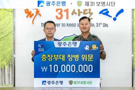 [¹Ìµð¾îÀü³² Á¦°¥´ëÁ¾ ±âÀÚ] ±¤ÁÖÀºÇà(ÀºÇàÀå ¼ÛÁ¾¿í)Àº ÃÖ±Ù Áö¿ª ÇâÅäºÎ´ëÀÎ Á¦31º¸º´»ç´Ü(»ç´ÜÀå ÃÖ¼ø°Ç)À» ¹æ¹®ÇØ ±ººÎ´ë À庴µéÀÇ ³ë°í¿¡ °¨»çÀÇ ¶æÀ» ´ã¾Æ 1õ¸¸¿øÀÇ À§¹®±ÝÀ» Àü´ÞÇß´Ù°í ¹àÇû´Ù.