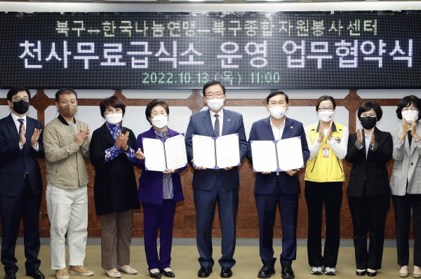 13ÀÏ ºÏ±¸¿¡ µû¸£¸é Çѱ¹³ª´®¿¬¸Í, ºÏ±¸Á¾ÇÕÀÚ¿øºÀ»ç¼¾ÅÍ¿Í ¡®Ãµ»ç¹«·á±Þ½Ä¼Ò¡¯ ¿î¿µ Àç°³¸¦ À§ÇÑ ¾÷¹«Çù¾àÀ» ü°áÇß´Ù.