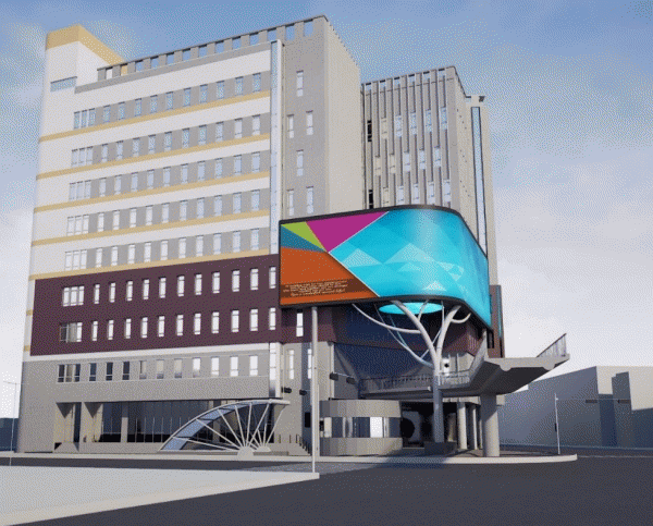 ¹é¿î½ºÄù¾î ¹Ìµð¾î ¿ùÀº ³Êºñ 42.4m¿¡ ³ôÀÌ 9.915mÀÇ ÃÊ´ëÇü LED µð½ºÇ÷¹ÀÌ·Î ³²±¸Ã»»ç Á¤¹® ¹æÇâ 4Ãþ°ú 5Ãþ Àü¸éºÎ¿¡ ¡®¤¤¡¯ÀÚ °î¼± ÇüÅ·Π¼³Ä¡µÈ´Ù.
