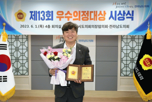 [¹Ìµð¾îÀü³² Á¦°¥´ëÁ¾ ±âÀÚ] Àü¶ó³²µµÀÇȸ ±âȹÇàÁ¤À§¿øÈ¸ ¹Ú¿øÁ¾ ÀÇ¿ø(´õºÒ¾î¹ÎÁÖ´ç, ¿µ±¤1)ÀÌ 1ÀÏ ´ëÇѹα¹ ½Ã.µµÀÇȸÀÇÀåÇùÀÇȸ ÁÖ°ü Á¦13ȸ ¿ì¼öÀÇÁ¤´ë»ó ½Ã»ó½Ä¿¡¼ ±×°£ÀÇ ÀÇÁ¤È°µ¿À» ÀÎÁ¤¹Þ¾Æ ¿ì¼öÀÇÁ¤´ë»óÀ» ¼ö»óÇß´Ù.