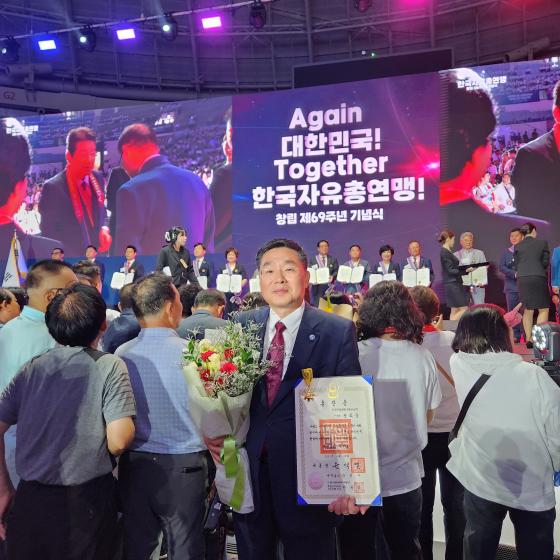 [¹Ìµð¾îÀü³² Á¦°¥´ëÁ¾ ±âÀÚ] Á¤È¸Áß Çѱ¹ÀÚÀ¯ÃÑ¿¬¸Í Àü¶ó³²µµÁöºÎ »ç¹«Ã³ÀåÀÌ Çѱ¹ÀÚÀ¯ÃÑ¿¬¸Í Á¦69ÁÖ³â ⸳±â³ä½Ä¿¡¼ ±¹¹ÎÈÆÀå ¸ñ·ÃÀåÀ» ¼öÈÆÇÏ´Â ¿µ¿¹¸¦ ¾È¾Ò´Ù.