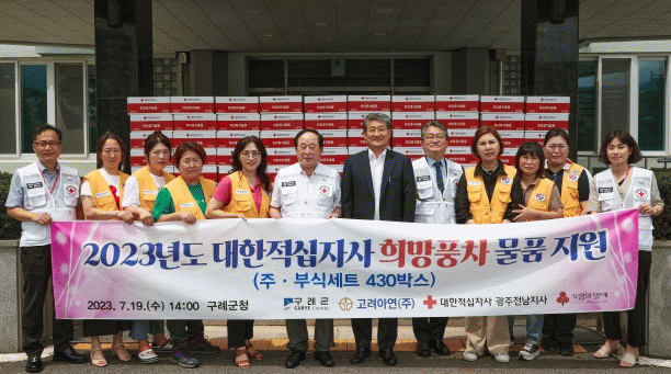 ´ëÇÑÀû½ÊÀÚ»ç ±¤ÁÖ¡¤Àü³²Áö»ç´Â °í·Á¾Æ¿¬(ÁÖ)ÀÌ ÈÄ¿øÇÑ ÁÖ¡¤ºÎ½Ä ¼¼Æ® 430¹Ú½º¸¦ Àü´ÞÇß°í, Àü´Þ ¹ÞÀº ¹°Ç°Àº °ü³» ¾î·Á¿î Ãë¾à°èÃþ °¡±¸¿¡ Àü´ÞµÆ´Ù.