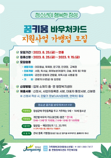 û¼Ò³â ¼ö´ç µµÀÔÀ» ¾ÕµÐ À强±ºÀº 25ÀϺÎÅÍ 9¿ù 15ÀϱîÁö ¡®Ã»¼Ò³â ²ÞŰ¿ò ¹Ù¿ìóīµå¡¯ °¡¸ÍÁ¡À» ¸ðÁýÇÑ´Ù. ´ë»óÀº û¼Ò³âÀÇ »ýȰ Áö¿ø, Áø·Î °³¹ß, ¹®È¡¤Ã¼À° Ȱµ¿ µî¿¡ ÀûÇÕÇÑ ¾÷ü´Ù.