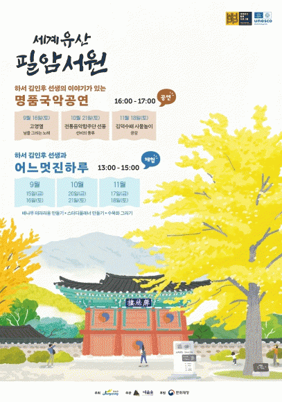 ±º¿¡ µû¸£¸é, ¿ÃÇØ ±¹¾Ç°ø¿¬Àº ¡®¼¼°èÀ¯»ê Çʾϼ¿ø, È£³²ÀÇ ¼±ºñ Çϼ ±èÀÎÈÄ ¼±»ýÀ» ¸¸³ª´Ù¡¯¸¦ ÁÖÁ¦·Î °ü°´°ú ¸¸³´Ù. 9¿ù¿¡¼ 11¿ù±îÁö ¸Å¿ù ¼Â° ÁÖ Åä¿äÀÏ ¼¿ø ¾Õ Àܵ𸶴翡¼ ¿¸± ¿¹Á¤ÀÌ´Ù.