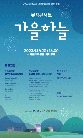 ¿ÃÇØ °ø¿¬ ÇÁ·Î±×·¥¿¡´Â Çѱ¹¿¹¼úÁ¾ÇÕÇб³ Ãâ½ÅÀÇ ÀþÀº ¿¹¼ú°¡µé·Î ±¸¼ºµÈ °ü¾ÇÇÕÁÖ´Ü 'Å©´©¾Æºê¶ó½º¾Ó»óºí', È¥¼ºÁßâ´Ü '¸®¿¡¶Ç Ŭ¶û(Lieto Klang)', û³â dz¹°´Ü 'ÁöÀ½'ÀÌ Ã⿬ÇÑ´Ù.