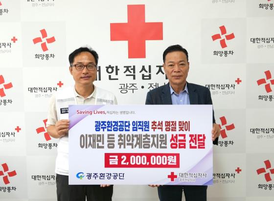 ±¤ÁÖȯ°æ°ø´ÜÀº Ãß¼®À» ¸Â¾Æ ÁÖº¯ÀÇ ¾î·Á¿î ÀÌ¿ôµéÀ» À§ÇØ ´ëÇÑÀû½ÊÀڻ翡 200¸¸¿øÀÇ ¼º±ÝÀ» ±âºÎÇÏ°í »çȸº¹Áö½Ã¼³ ¡®¾ÖÀÏÀÇ Áý¡¯À» ã¾Æ 100¸¸¿ø »ó´çÀÇ »ýÇÊǰÀ» Àü´ÞÇß´Ù.