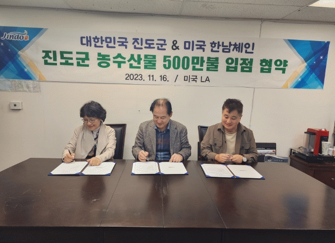 ±èÈñ¼ö Áøµµ±º¼ö¿Í ¹Ú³²±Ô ³ó¼ö»êÀ¯Åë»ç¾÷´ÜÀåÀ¸·Î ±¸¼ºµÈ Áøµµ±º ³ó¼ö»ê¹° ¼öÃâ °³Ã´´ÜÀº À̹ø Çù¾àÀ» ÅëÇØ Áøµµ»ê ½Ò, ¹Ì¿ª, ±è, ²É°Ô, ¿ï±Ý °¡°ø½Äǰ µîÀ» ¹Ì±¹¿¡ ù ¼±À» º¸ÀÌ°Ô µÆ´Ù.