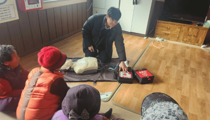 °¢ ¸¶À» °æ·Î´ç¿¡ ÀÚµ¿½ÉÀåÃæ°Ý±â¸¦ ¼³Ä¡Çϰí ÁֹεéÀ» ´ë»óÀ¸·Î ½ÉÆó¼Ò»ý¼ú°ú ÀÚµ¿½ÉÀåÃæ°Ý±â »ç¿ë¹ý ±³À°µµ ÇÔ²² ½Ç½ÃÇß´Ù.