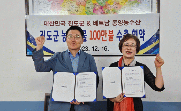 ¿ìÈ«¼· ÁøµµºÎ±º¼ö¸¦ ´ëÇ¥·Î ±¸¼ºµÈ Áøµµ±º ³ó¼ö»ê¹° ¼öÃâ °³Ã´´ÜÀº º£Æ®³²À» ¹æ¹®ÇØ ¿ø¸¶Æ®(ÇϳëÀÌ ¼ÒÀç), Ç÷¯½º¸¶Æ®(¹Ú´Ñ ¼ÒÀç) µî Áøµµ ³ó¼ö»ê¹° ÆÇÃËÇà»çÀå¿¡ Âü¼®ÇÏ°í ¼öÃâ Çù¾àÀ» ü°áÇß´Ù.