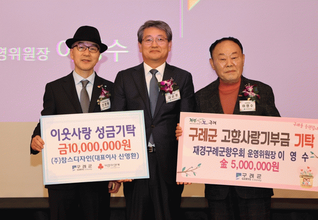 ±âºÎ¿¡ Âü¿©ÇÑ Àλç´Â Àç°æ±¸·Ê±ºÇâ¿ìȸ ÀÌ¿µ¼ö ¿î¿µÀ§¿øÀå°ú ¢ßÂü½ºµðÀÚÀÎ ½Å¿µÈ¯ ´ëÇ¥ÀÌ»ç·Î °íÇâ»ç¶û±âºÎ±Ý ÃÖ°í¾×ÀÎ 500¸¸ ¿ø°ú ÀÌ¿ôµ½±â ¼º±Ý 1,000¸¸ ¿øÀ» ±âŹÇß´Ù.