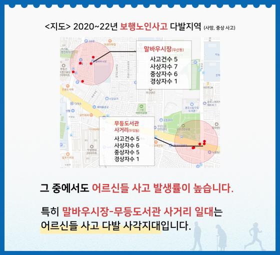 ƯÈ÷ ¸»¹Ù¿ì½ÃÀå~¹«µîµµ¼°ü »ç°Å¸® ºÎ±ÙÀÌ °í·ÉÃþ ±³Åë»ç°í ´Ù¹ß ºÒ¸í¿¹ÀÇ Á᫐ ±¸°£ÀÌ´Ù. ÀÌ¿¡ Á¤ È帴 À̸鵵·Î¸¦ Á¤ºñÇØ ¾î¸£½ÅµéÀÇ º¸Çà ¹× º¸Çà º¸Á¶ ÀåÄ¡ µîÀÌ ºÒÆíÇÔ ¾ø´Â À̵¿±ÇÀ» ÀÌ·ï³»°í Ⱦ´Üº¸µµ¸¦ ´ëÆø Áõ¼³ÇØ ¾î¸£½ÅµéÀÌ ¸¶À½ ³õ°í Å« ±æÀ» °Ç³Î ¼ö ÀÖ´Â ¾ÈÀüÇÑ ºÏ±¸ ¸¸µé±â¸¦ ÃÖ¿ì¼± ¸ñÇ¥·Î »ï¾Ò´Ù.