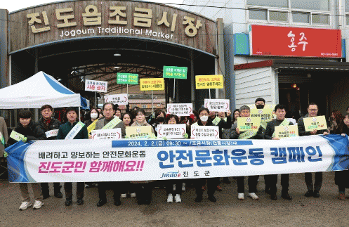 À̹ø ¾ÈÀü¹®È¿îµ¿Àº ¼³ ¸íÀýÀ» ¸Â¾Æ »ýȰ ¼Ó ¾ÈÀü»ç°í ¿¹¹æ È«º¸¸¦ À§ÇØ ÁøµµÀ¾ Á¶±Ý½ÃÀå¿¡¼ Áøµµ±ºÃ» Á÷¿øµé°ú »óÀÎ, ÁֹΠµî 50¿© ¸íÀÌ Âü¿©Çß´Ù.