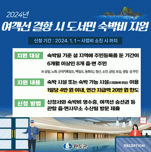 ±ºÀº Áö³ 2021³â 12¿ù '¿Ïµµ±º ¿¬¾È ¿©°´¼± ÀÌ¿ë ¼¶ ÁֹΠ¼÷¹Úºñ Áö¿ø Á¶·Ê'¸¦ Á¦Á¤Çϰí, 2022³â ÇϹݱâºÎÅÍ 2023³â±îÁö ÃÑ 330¸íÀÇ ¼¶ Áֹε鿡°Ô ¼÷¹Úºñ¸¦ Áö¿øÇß´Ù.