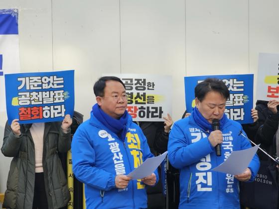 16ÀÏ ´õºÒ¾î¹ÎÁÖ´ç ±¤»ê±¸(À») ±¹È¸ÀÇ¿ø ¿¹ºñÈĺ¸ÀÎ ÃÖÄ¡Çö, ±è¼ºÁø µÎ ¿¹ºñÈ帰¡ ¹ÎÁÖ´ç °æ¼± Èĺ¸ ¹ßÇ¥¿¡ ´ëÇØ ÀÌÀǸ¦ Á¦±âÇϸç ÁöÁö´ç¿ø 100¿©¸í°ú ÇÔ²² »ó°æÇØ ¹ÎÁÖ´ç Áß¾Ó´ç»ç¸¦ Ç×ÀÇ ¹æ¹®Çϰí Àç½ÉÀ» ¿äûÇÏ´Â ¼º¸í¼­¸¦ ¹ßÇ¥Çß´Ù.