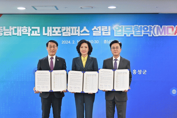 µµ´Â 19ÀÏ µµÃ» »óȲ½Ç¿¡¼ ±èÅÂÈì Áö»ç¿Í ÀÌÁø¼÷ Ãæ³²´ë ÃÑÀå, ÀÌ¿ë·Ï È«¼º±º¼ö°¡ ¡®Ãæ³²´ë ³»Æ÷Ä·ÆÛ½º ¼³¸³À» À§ÇÑ Ãæ³²µµ-Ãæ³²´ë-È«¼º±º ÇÕÀǰ¢¼(MOA)¡¯¿¡ ¼¸íÇß´Ù°í ¹àÇû´Ù.