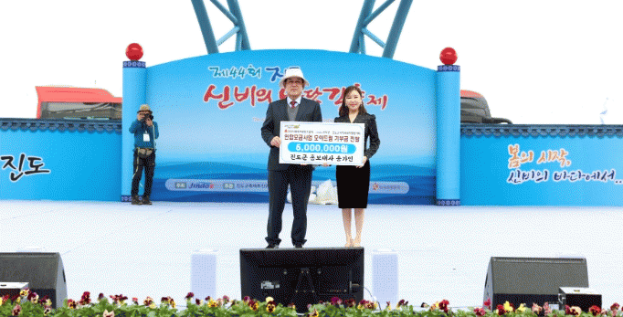 Á¦44ȸ Áøµµ ½ÅºñÀÇ ¹Ù´å±æ ÃàÁ¦ÀÇ °³¸·½Ä ÃàÇϰø¿¬À» ¾ÕµÎ°í ¹«´ë¿¡ ¿Ã¶ó Áøµµ±º¿¡ ±âʱÝÀ» Àü´ÞÇÏ¸ç ¡°¾ðÁ¦ ¾îµð¼³ª Ç×»ó ¿·ÄÇÑ ¼º¿øÀ» º¸³»Áֽô ³» °íÇâ Áøµµ±º¹ÎµéÀÇ »ç¶ûÀÌ Å« ÈûÀÌ µÈ´Ù¡±¸ç ¡°¹ÞÀº »ç¶ûÀ» ´Ù½Ã °íÇâ ÁøµµÀÇ ¾î·Á¿î ÀÌ¿ôÀ» À§ÇØ µÇµ¹·Á ÁÙ ¼ö ÀÖ¾î ±â»Ú°Ô »ý°¢ÇÑ´Ù¡±°í ÀüÇß´Ù.