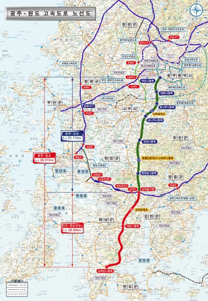 ¿Ïµµ±ºÀÇ ¼÷¿ø»ç¾÷ÀÎ ±¤ÁÖ~¿Ïµµ °í¼Óµµ·Î °Ç¼³Àº Áö³ 2014³â Ÿ´ç¼º ÀçÁ¶»ç ÈÄ ±¤ÁÖ º®Áøµ¿~°Áø ¼ºÀü ±¸°£À» 1´Ü°è, °Áø ¼ºÀü~ÇØ³² ³²Ã¢ ±¸°£À» 2´Ü°è·Î ³ª´©¾î ÃßÁøÇϰí ÀÖ´Ù.