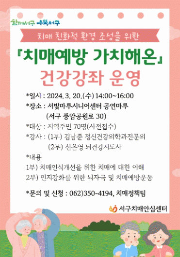 À̹ø ÇÁ·Î±×·¥Àº ¿À´Â 11¿ù±îÁö Ä¡¸Å°ü·Ã Àü¹®°¡¸¦ ÃÊÃ»ÇØ ÁøÇàµÇ¸ç Áֹε鿡°Ô Ä¡¸Å ¹ß»ý À§Çè ¿äÀÎ, Ä¡¸Å¿¹¹æÀ» À§ÇÑ »ýȰ½À°ü ¹× ¿îµ¿¹ý µîÀ» ¾Ë·ÁÁÙ ¿¹Á¤ÀÌ´Ù.