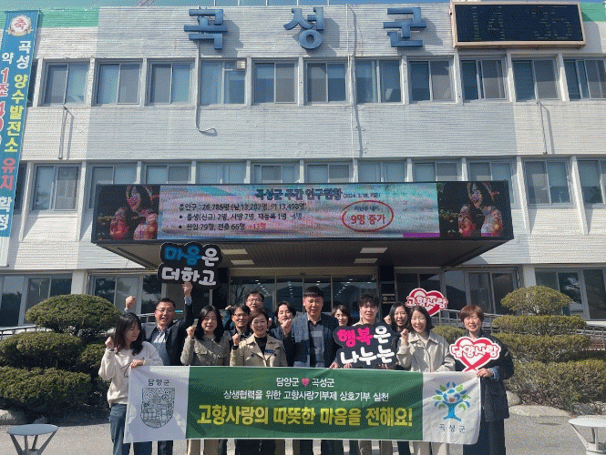 À̳¯ ´ã¾ç±º Ãà»ê¿ø¿¹°ú¿Í °î¼º±º À¯ÅëÃà»ê°ú Á÷¿ø 40¿© ¸íÀÌ µ¿ÂüÇØ ÃÑ 420¸¸ ¿øÀÇ °íÇâ»ç¶û ±âºÎ±ÝÀ» »óÈ£±âºÎÇϱâ·Î Çù¾àÇßÀ¸¸ç, ¼·ÎÀÇ Áö¿ª¹ßÀüÀ» ÀÀ¿øÇÏ°í °íÇâ»ç¶û±âºÎÁ¦ÀÇ ¼º°øÀûÀÎ Á¤Âø ¹× ¾÷¹«°øÀ¯ µî¿¡ Àû±Ø Çù·ÂÇϱâ·Î Çß´Ù.