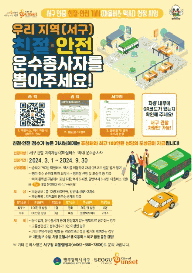 ¼±Á¤¹æ¹ýÀº ¸¶À»¹ö½º, Åýø¦ ÀÌ¿ëÇÏ´Â ÁֹεéÀÌ Â÷·® ³» ºÎÂøµÈ ¾È³»¼ QRÄڵ带 ÈÞ´ëÆùÀ¸·Î ¿¬°áÇØ 5°³ Æò°¡ Ç׸ñ¿¡ Á¡¼ö¸¦ ºÎ¿©ÇÏ´Â ¹æ½ÄÀ¸·Î ÁøÇàµÈ´Ù.