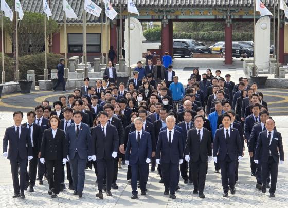 ´ç¼±ÀÚµéÀº ÇåÈ¿Í ºÐÇâ ÀÌÈÄ ¹«¸í¿»ç¹¦¿ª µîÀ» Â÷·Ê·Î Âü¹èÇÏ°í ¹ÎÁÖÀÇ ¹® ¾Õ¿¡ ¼¼ ´ç¼±ÀÇ °¢¿À¸¦ ´ãÀº °áÀǹ®À» Â÷ºÐÈ÷ ÀÐ¾î ³»·Á°¬´Ù.