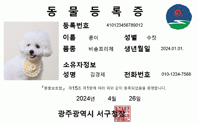 [¹Ìµð¾îÀü³² ±èÁ¤¿ì ±âÀÚ]±¤ÁÖ±¤¿ª½Ã ¼±¸°¡ µ¿¹°µî·ÏÁ¦¸¦ È«º¸¤ýÀå·ÁÇϱâ À§ÇØ Ä«µåÇü µ¿¹°µî·ÏÁõÀ» ¹ß±ÞÇÑ´Ù.