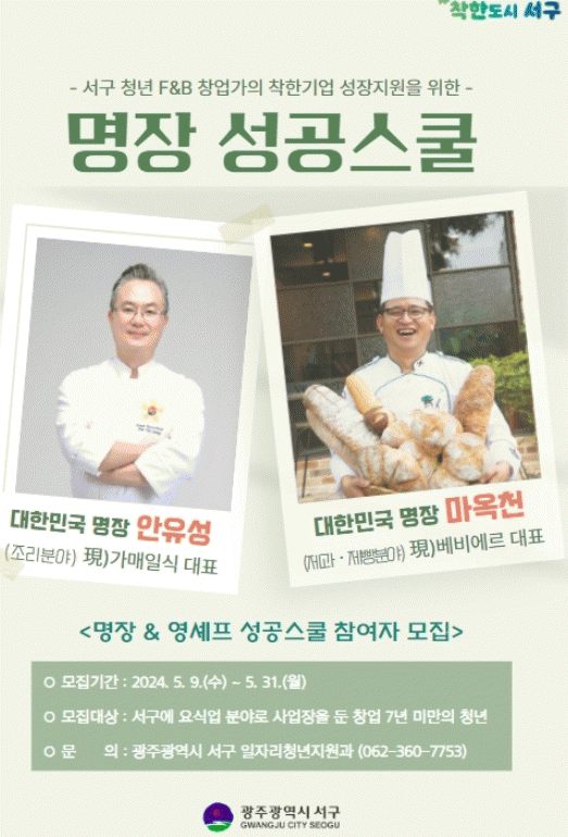 ¼±¸´Â ´ëÇѹα¹ ¸íÀåÀÎ ¸¶¿Áõ ¸íÀå(Á¦°ú¡¤Á¦»§ ºÐ¾ß, º£ºñ¿¡¸£ ´ëÇ¥), ¾ÈÀ¯¼º ¸íÀå(Á¶¸® ºÐ¾ß, °¡¸Å½º½Ã ´ëÇ¥)°ú ÇÔ²² û³â â¾÷°¡µéÀÇ ·¹½ÃÇǸ¦ °íµµÈ½ÃŰ´Â 1:1 ¸ÂÃãÇü ÇÁ·Î±×·¥ ¡®¸íÀå ¼º°ø ½ºÄð¡¯À» óÀ½ ¼±º¸ÀδÙ.