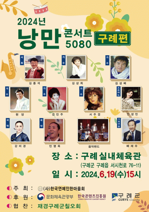 »çȸ´Â ±¸·Ê Ãâ½Å MC ±èÁ¾¼®ÀÌ ¸Ã¾Ò°í, ¡®ÄÚ½º¸ð½º ÇǾî ÀÖ´Â ±æ¡¯À» ºÎ¸¥ ±è»óÈñ, ¡®¸î ¹ÌÅÍ ¾Õ¿¡ µÎ°í¡¯¸¦ ºÎ¸¥ ±è»ó¹è, ¡®´çµ¹ÇÑ ¿©ÀÚ¡¯ÀÇ ¼ÁÖ°æ, ¡®È¸·æÆ÷¡¯ÀÇ °¹ÎÁÖ, ¡®Á¤Çϳª ÁØ °ÍÀÌ¡¯ÀÇ Çö´ç µî 70¡80³â´ë¸¦ dz¹ÌÇß´ø ÃÖ°í °¡¼öµé°ú À½¾Ç ¹êµå°¡ Ã⿬ÇÑ´Ù.