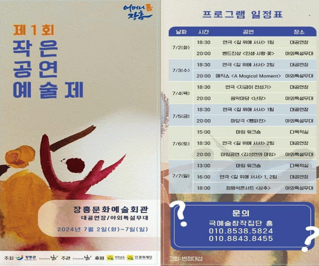 [¹Ìµð¾îÀü³² ÃÖ¶õÈñ ±âÀÚ]ÀåÈﱺÀº °ø¿¬Àå»óÁÖ´Üü ù ¹øÂ° ¹®ÈÇà»ç·Î ¡®Á¦1ȸ ÀÛÀº°ø¿¬¿¹¼úÁ¦¡¯¸¦ ¿À´Â 7¿ù 2ÀÏ ºÎÅÍ 7ÀϱîÁö 6ÀÏ¿¡ °ÉÃÄ ÁøÇàÇÑ´Ù°í ¹àÇû´Ù.