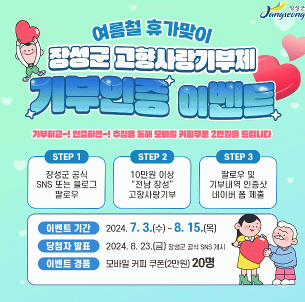 Âü¿© ¹æ¹ýÀº À强±º °ø½Ä ¿¡½º¿£¿¡½º(SNS)³ª ºí·Î±×¸¦ ±¸µ¶Çϰí, À强±º °íÇâ»ç¶û±âºÎÁ¦¿¡ 10¸¸ ¿ø ÀÌ»ó ±âºÎÇÑ ´ÙÀ½ ±¸µ¶, ±âºÎ³»¿ª ÀÎÁõ »çÁø(ĸó À̹ÌÁö)À» ³×À̹öÆû¿¡ Á¦ÃâÇÏ¸é µÈ´Ù.