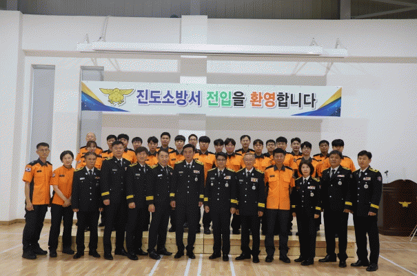 ¹ÚõÁ¶ ¼ÀåÀº "Áøµµ¼Ò¹æ¼·Î ÀüÀÔÇÑ Á÷¿øµéÀ» Áø½ÉÀ¸·Î ȯ¿µÇÑ´Ù"¸ç "°¢ÀÚÀÇ ÀÚ¸®¿¡¼ ±º¹ÎÀÇ ¾ÈÀüÀ» ÁöŰ´Â ¼Ò¹æ°ø¹«¿øÀ¸·Î¼ »ç¸í°¨À» °¡Áö°í ÃÖ¼±À» ´ÙÇØÁֽñ⸦ ¹Ù¶õ´Ù"¶ó°í ÀüÇß´Ù.