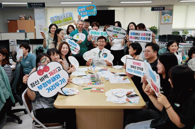 ¡®³ªÀÇ Ã»·ÅºÎä ¸¸µé±â¡¯´Â û·ÅÀÇ ¹Ù¶÷ÀÌ ºÎÁ¤ºÎÆÐ¿Í ¹«´õÀ§¸¦ ½Ã¿øÇÏ°Ô ³¯·Á¹ö¸®±â¸¦ ¹Ù¶ó´Â ¸¶À½À» ´ã¾Æ ±âȹµÆÀ¸¸ç, °»ç 2ÀÎ 1Á¶·Î ±¸¼ºµÈ 3ÆÀÀÌ °¢ ºÎ¼ ¹× À¾¸é ÇàÁ¤º¹Áö¼¾ÅÍ(¸é»ç¹«¼Ò)¸¦ ã¾Æ ÁøÇàµÆ´Ù.