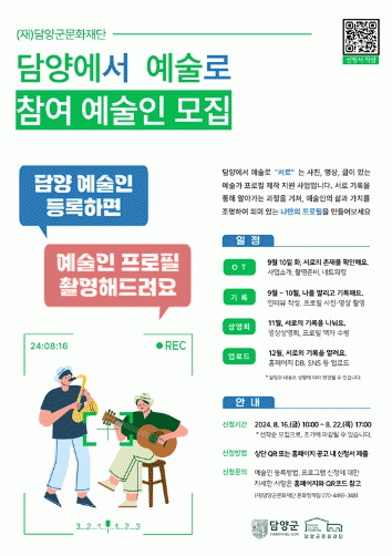 ÇÁ·Î±×·¥Àº ´ã¾ç±º¹®ÈÀç´Ü ȨÆäÀÌÁö¿¡ ¿¹¼úÀÎ DB µî·Ï ¼ºñ½º¿¡ ½Åû ÁßÀ̰ųª µî·Ï ¿Ï·áµÈ ¿¹¼úÀÎÀº ´©±¸³ª Âü¿©ÇÒ ¼ö ÀÖÀ¸¸ç ½ÅûÀº 8¿ù 16ÀÏ ±Ý¿äÀϺÎÅÍ ¼±Âø¼øÀ¸·Î ¸ðÁýÇÑ´Ù.