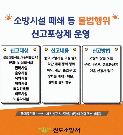 ÃÖÃÊ ½Å°í ½Ã ½Å°íÀÚ¿¡°Ô 5¸¸¿ø(Çö±Ý ¶Ç´Â ÀüÅë½ÃÀå ¿Â´©¸®»óǰ±Ç), °°Àº ½Å°íÀÎÀÌ 2ȸ ÀÌ»ó ½Å°í ½Ã ¼Òȱ⠡¤ ´Üµ¶°æº¸Çü °¨Áö±â µî 5¸¸¿ø »ó´çÀÇ ¼Ò¹æ½Ã¼³À» Áö±ÞÇÏ¸ç µ¿ÀÏÇÑ »ç¶÷ÀÇ ½Å°í¿¡ ´ëÇÑ Æ÷»ó±ÝÀº ¿ù°£ 30¸¸¿ø, ¿¬°£ 300¸¸¿ø À̳»·Î Æ÷»óÀ» ¹ÞÀ» ¼ö ÀÖ´Ù.