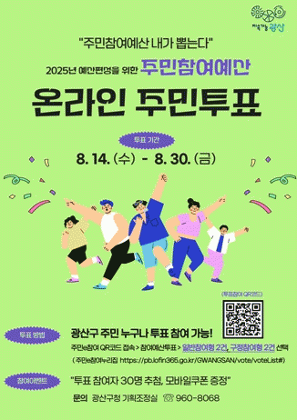 ±¤»ê±¸´Â ¿Â¶óÀÎ ÁÖ¹ÎÅõÇ¥ °á°ú¿Í µ¿º° Áö¿ªÅä·Ðȸ °á°ú¸¦ ´õÇØ ³»³âµµ ÁÖ¹ÎÂü¿©¿¹»ê »ç¾÷À» °áÁ¤ÇÒ °èȹÀÌ´Ù. ÁÖ¹ÎÂü¿©¿¹»êÀ» ¹Ý¿µÇÑ 2025³â º»¿¹»êÀº ¿¬¸» ±¤»ê±¸ÀÇȸ ½É»ç¸¦ °ÅÃÄ È®Á¤µÈ´Ù.